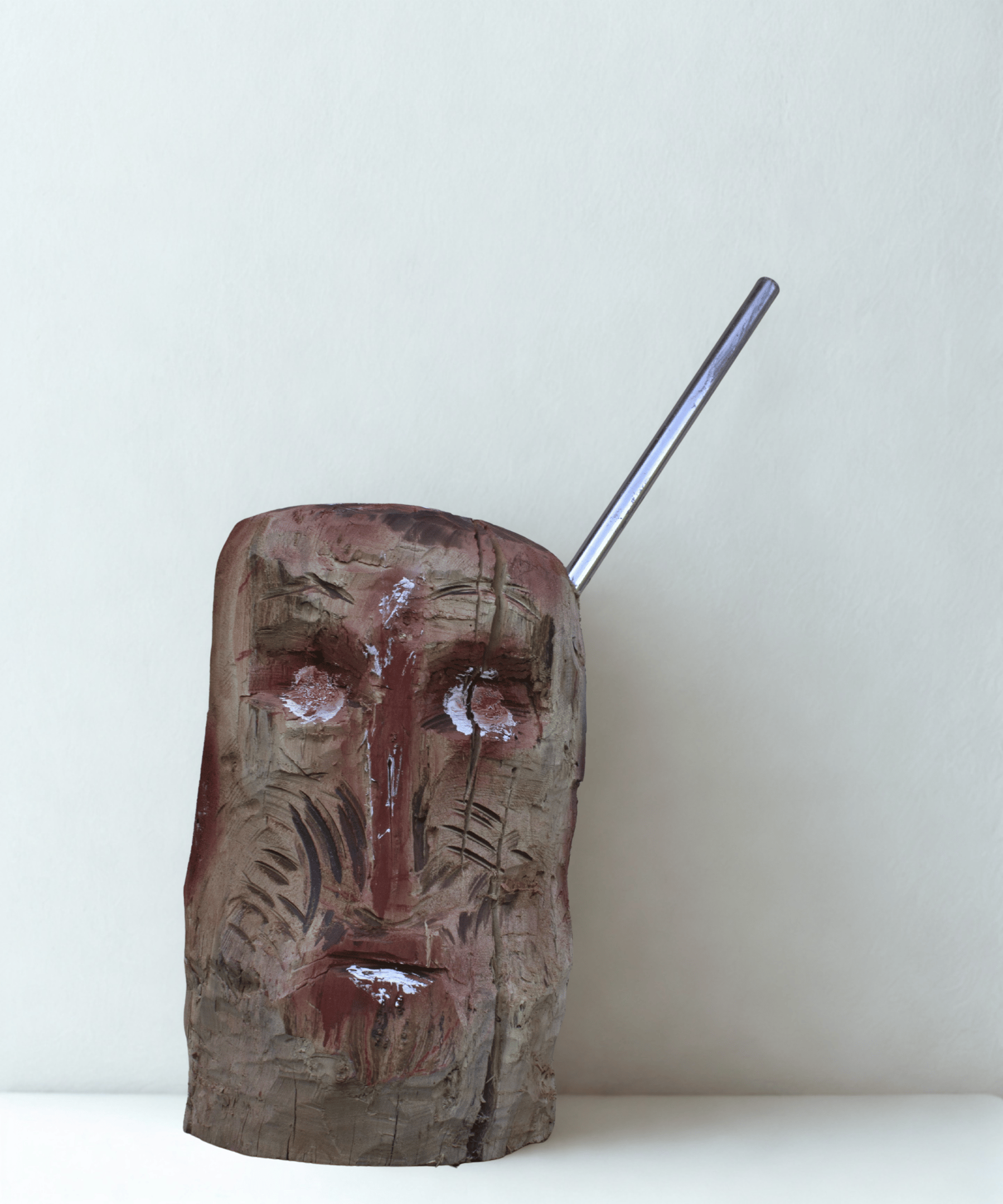 Head with Rod — Carved Wood, 2023