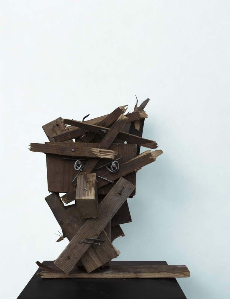 Broken Head from Planks — Mixed Media (Wood Planks, Nails), 2023